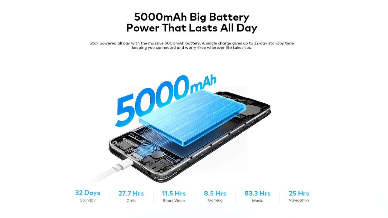 - itel A100C 4G স্মার্টফোনে রয়েছে 5000 mAh ব্যাটারি।