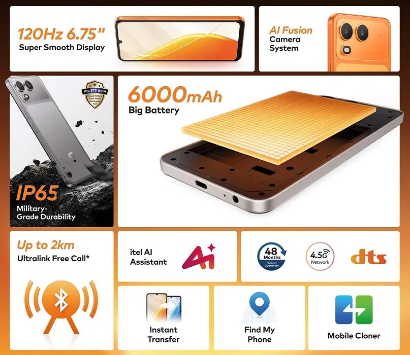 ফোনটিতে যুক্ত করা হয়েছে 2km UltraLink Free Call ফিচার। এর মাধ্যমে মোবাইলে নেটওয়ার্ক না থাকলেও প্রায় ২ কিলোমিটার দূরত্বের মধ্যে অন্য ডিভাইসের সঙ্গে সরাসরি বিনামূল্যে কথা বলা সম্ভব হয়। পাশাপাশি রয়েছে itel AI ফিচার, যা দৈনন্দিন কাজকে আরও সহজ ও সুবিধাজনক করে তোলে।
