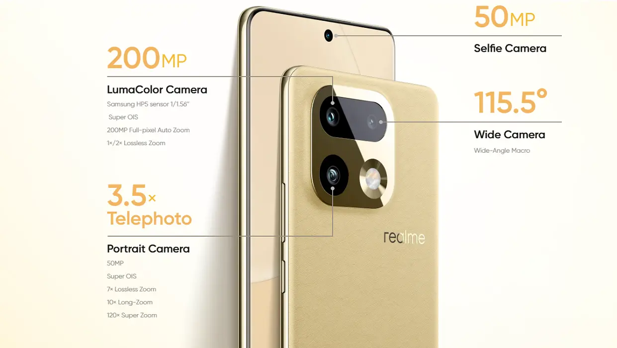- Realme 16 Pro Plus ফোনে রয়েছে 200MP OIS প্রাইমারি ক্যামেরা।