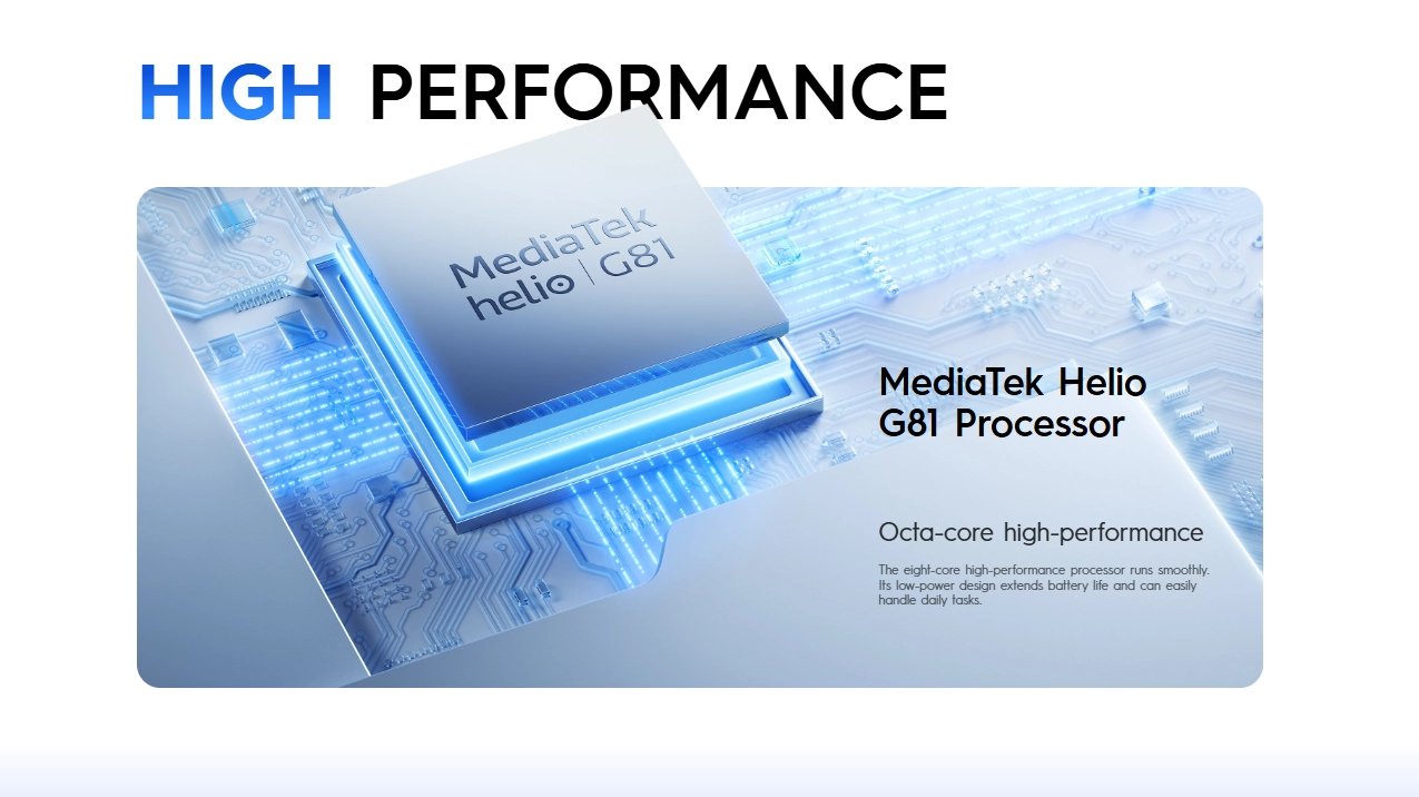 ফটোগ্রাফির জন্য ফোনের রেয়ারে LED ফ্ল্যাশ সহ 50MP AI প্রাইমারি ক্যামেরা ব্যবহার করা হয়েছে এবং সেলফি ও ভিডিও কলের জন্য ফোনের সামনে রয়েছে 8MP ফ্রন্ট ক্যামেরা। পাশাপাশি ফোনটিতে যুক্ত আছে IP64 রেটিং, যা হালকা ধুলোবালি ও পানির ছিটা প্রতিরোধ করতে সক্ষম। ফোনটিতে 4G নেটওয়ার্ক, Wi-Fi 5, USB চার্জিং, Bluetooth 5.4 এবং NFC সাপোর্ট করে।