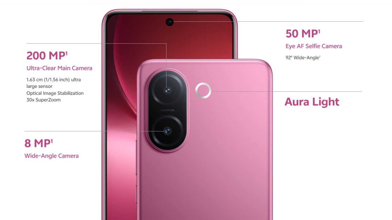ফটোগ্রাফারদের নজর কাড়তে Vivo V60e 5G ফোনের রেয়ারে 200MP প্রাইমারি ক্যামেরা এবং 85MM টেলিফটো প্রোটেট লেন্স দেওয়া হবে, যা চমৎকার ক্লোজআপ শট ক্যাপচার করতে সক্ষম। এছাড়াও, ফোনটির সামনে থাকবে 50MP ফ্রন্ট ক্যামেরা।