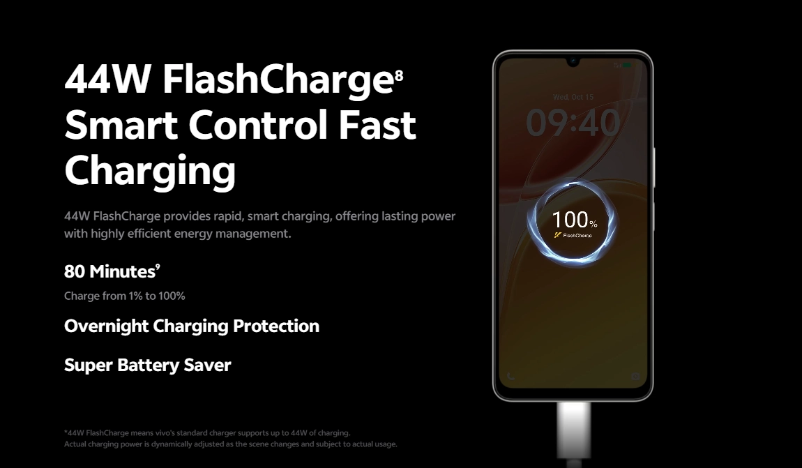 দীর্ঘ সময় ব্যবহারের জন্য ফোনটিতে 6500mAh বড় ব্যাটারি দেওয়া হয়েছে এবং দ্রুত চার্জ করার জন্য এই ফোনে রয়েছে 44W ফাস্ট চার্জিং। জানা গেছে, ফোনের ব্যাটারি ৫ বছর পর্যন্ত স্থায়ী পারফরম্যান্স প্রদান করবে এবং 80 মিনিটে 1% থেকে 100% পর্যন্ত চার্জ করা সম্ভব হবে। এছাড়া ধুলোবালি ও পানির ছিটা প্রতিরোধের জন্য ফোনে থাকছে IP65 রেটিং।