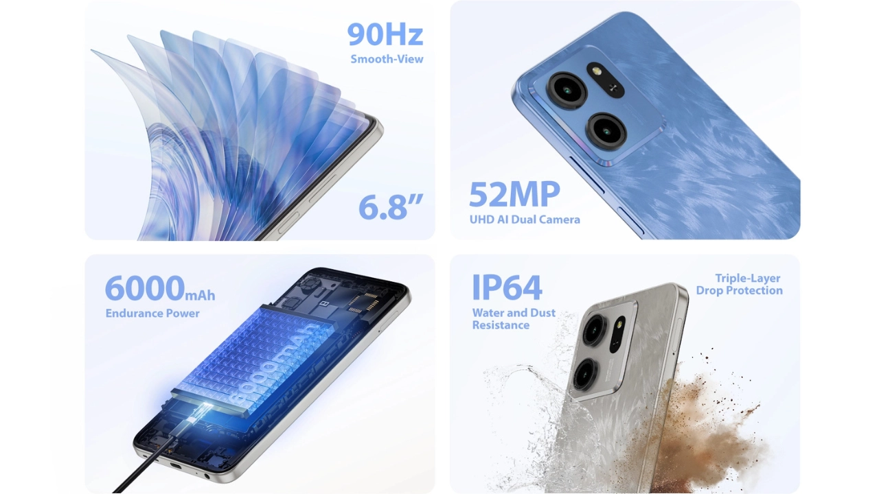 ফোনটিতে রয়েছে একটি শক্তিশালী 6000mAh ব্যাটারি, এতে 10W ফাস্ট চার্জিং সাপোর্ট করে, ফলে গেম খেলা ও দৈনন্দিন কাজের সময় ফোনটি দীর্ঘক্ষণ ব্যাটারি ব্যাকআপ দেয়। নতুন এই ফোন IronGuard সুরক্ষা দিয়ে তৈরি, যেখানে রয়েছে ট্রিপল-লেয়ার ড্রপ প্রোটেকশন। পাশাপাশি এর মজবুত ডায়মন্ড কাঠামোর ডিজাইন দৈনন্দিন ব্যবহারের ধাক্কা ও কঠিন পরিস্থিতি সহজেই সামলাতে পারে।