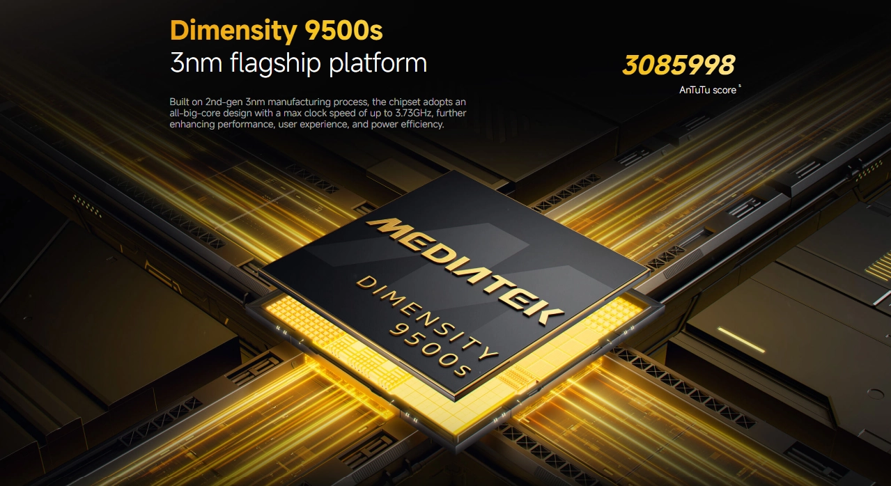 - পাশাপাশি MediaTek Dimensity 9500s (3nm) প্রসেসর দেওয়া হয়েছে।