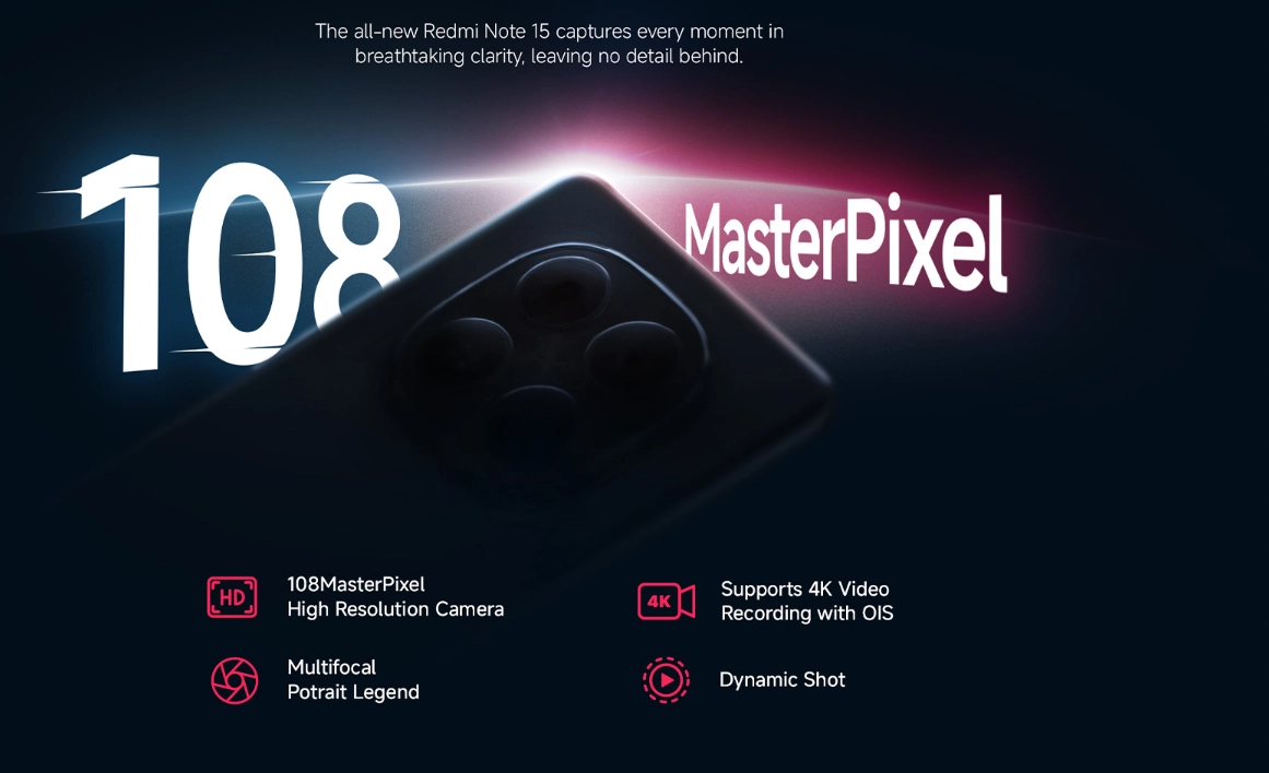 - Redmi Note 15 5G ফোনে থাকবে 108MP MasterPixel Edition ফিচার।