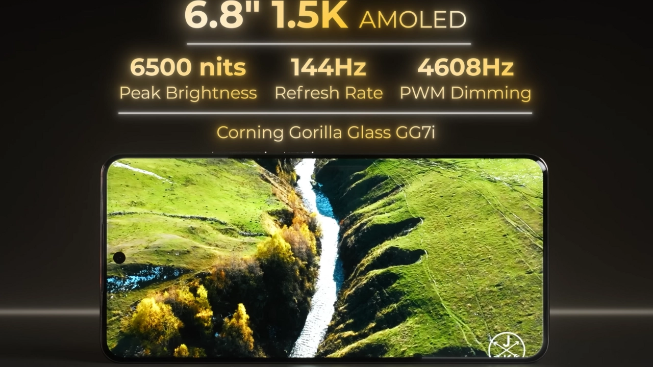 ফোনটির স্ক্রিন-টু-বডি রেশিও 91.35%, ফলে ভিডিও বা সিনেমা দেখার সময় ছবি আরও প্রাকৃতিক এবং স্পষ্ট মনে হয়। এই স্ক্রিন 6500nits পিক ব্রাইটনেস পর্যন্ত উজ্জ্বল হতে পারে, তাই বাইরে বা তীব্র রোদে স্ক্রিন দেখা সহজ হয় এবং ভিডিও বা ওয়েবপেজ আরও পরিষ্কার দেখা যায়। স্ক্রিনে রয়েছে মজবুত ও স্ক্র্যাচ-প্রতিরোধী Corning Gorilla Glass 7i প্রটেকশন, যা দৈনন্দিন ছোটখাটো ক্ষতি, স্ক্র্যাচ বা হালকা পড়ে যাওয়া থেকে ফোনকে ভালোভাবে সুরক্ষা দেয়।